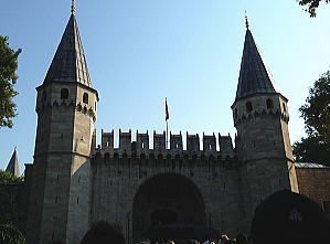 トプカプ宮殿の入り口、表敬の門です。朝一番で行ったけどもう行列が!15分くらい並んで入りました。