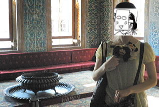 黒人宦官の部屋を抜けると向かい合わせにでっかい豪華な鏡がある!向かい合わせの鏡を置くことでハレムの入り口を警備していたそうです。決して↓のようにアホな写真を撮るためではありません(笑)。