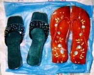 | こちらのサンダルは 左のグレーのサンダルが ホーチミンで11ドル。 右の茶色のサンダルが ホイアンで3.5ドル。 次に行ったときは ホイアンでサンダル買い溜め したてやる……。 |