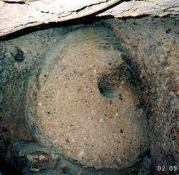 | 敵の侵入をふせぐドアです。地下都市にキリスト教徒たちが 住んだのは、迫害をのがれるためなのでこういうドアがあるんですね。 他にも学校やトイレ、パンを焼くカマドなど、一通り生活に 必要なものが揃っていました。 |