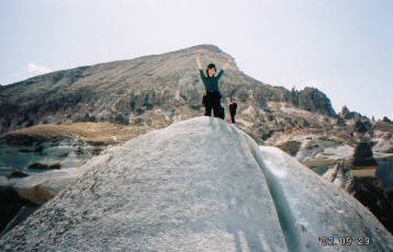 | →は石灰っぽい岩えでした。触っただけで、パラパラと 崩れ落ちました。この写真は「ねね登ってくるから、 しゅんしゅんさん写真撮って!」としゅんしゅんさんに カメラを押し付けて撮らせた記憶が……(爆)。 |