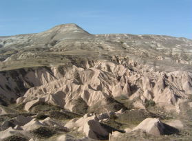 | 多分これがゼルベの谷と呼ばれる一部なのだと思う。 写真の順番からの想像と、ガイドブックを 見比べてだからアヤシイけど。 なんだか、見方や写真の撮るスポットで 色々な風景があって……。 とりあえずここはカッパドキアということで……(笑)。 |