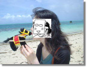 桟橋にて。ネット更新用に俺で顔を隠す。 |