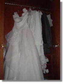 | 2階のクローゼットをちょっと開けてみよう。 明日のドレスとタキシードは部屋のクローゼットに かけてある。 ねねがドレスを見るたび「薔薇ドレス、ス・テ・キ♪」 などと呟いているので この辺でクローゼットは閉めようと思う。 閉める |