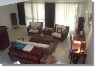 | 気を取り直して、こちらの写真は部屋の中。 部屋は二階建てのロフト風。 撮影会も終わり、日焼けをしないように 部屋の中でくつろぐことに。 こういうこともあろうかと思って日本から 持ってきた『あさきゆめみし全巻』を ゴロゴロしながら読書するねね&ねね婿。 異国で和の世界。さすがねね&ねね婿、おかしい。 |
