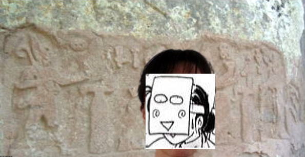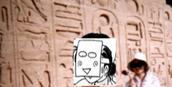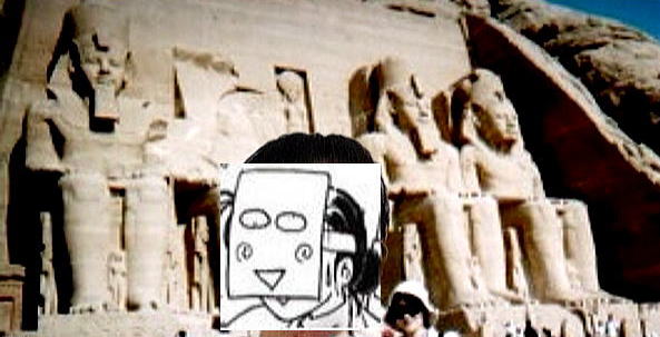 エジプト、アブシンベル前のヒエログリフ。24歳のねねとコラボ。